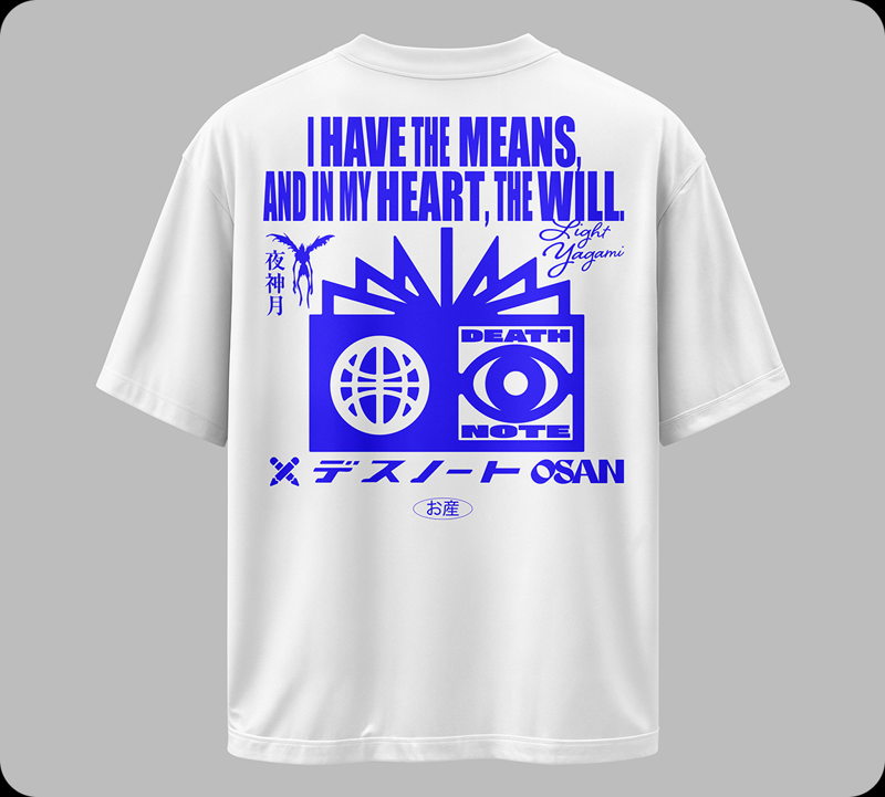 Uma estampa feita para quem conhece a escuridão brilhante de Death Note de perto. O design coloca no peito uma das frases mais icônicas e perturbadoras do anime: “I HAVE THE MEANS, AND IN MY HEART, THE WILL.” A composição traz uma releitura contemporânea do Death Note, transformado em símbolo gráfico, quase um artefato urbano reimaginado. Na mesma construção visual, o contorno do Ryuk aparece como uma sombra que observa tudo de cima, mantendo o ar misterioso do shinigami. Já o nome Light Yagami surge como assinatura estilizada, reforçando a ambiguidade entre justiça e obsessão que define o personagem. É o tipo de estampa que chama no olhar, primeiro pela tipografia maximalista, depois pelas referências que só quem é fã capta. A peça acompanha essa energia. A Camiseta Oversized Fio 30 é feita em 100% algodão, tem modelagem quadrada, gola canelada 2x1 e um caimento amplo que traz conforto e estilo urbano. É moderna, despojada e perfeita para quem gosta de presença no visual. Essa peça é para quem veste personalidade. Se você é fã de Death Note, essa é daquelas que não dá pra deixar passar. Garanta a sua.